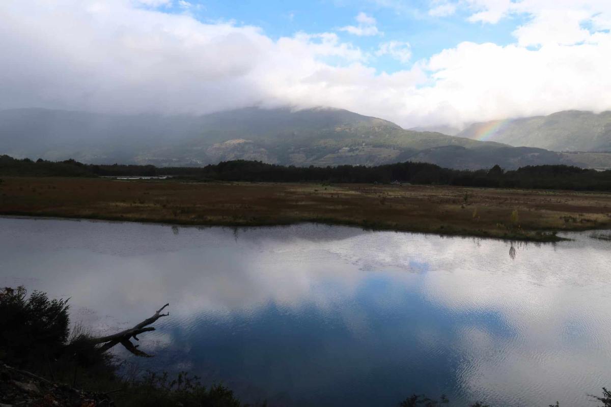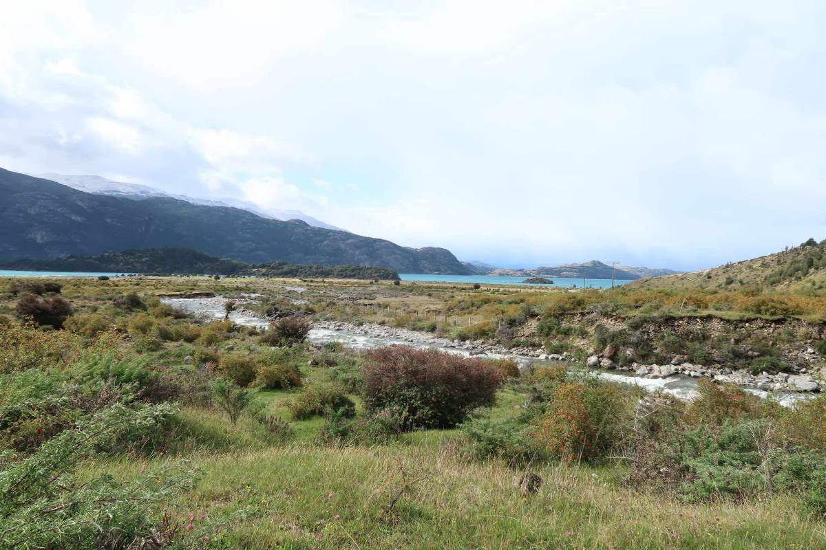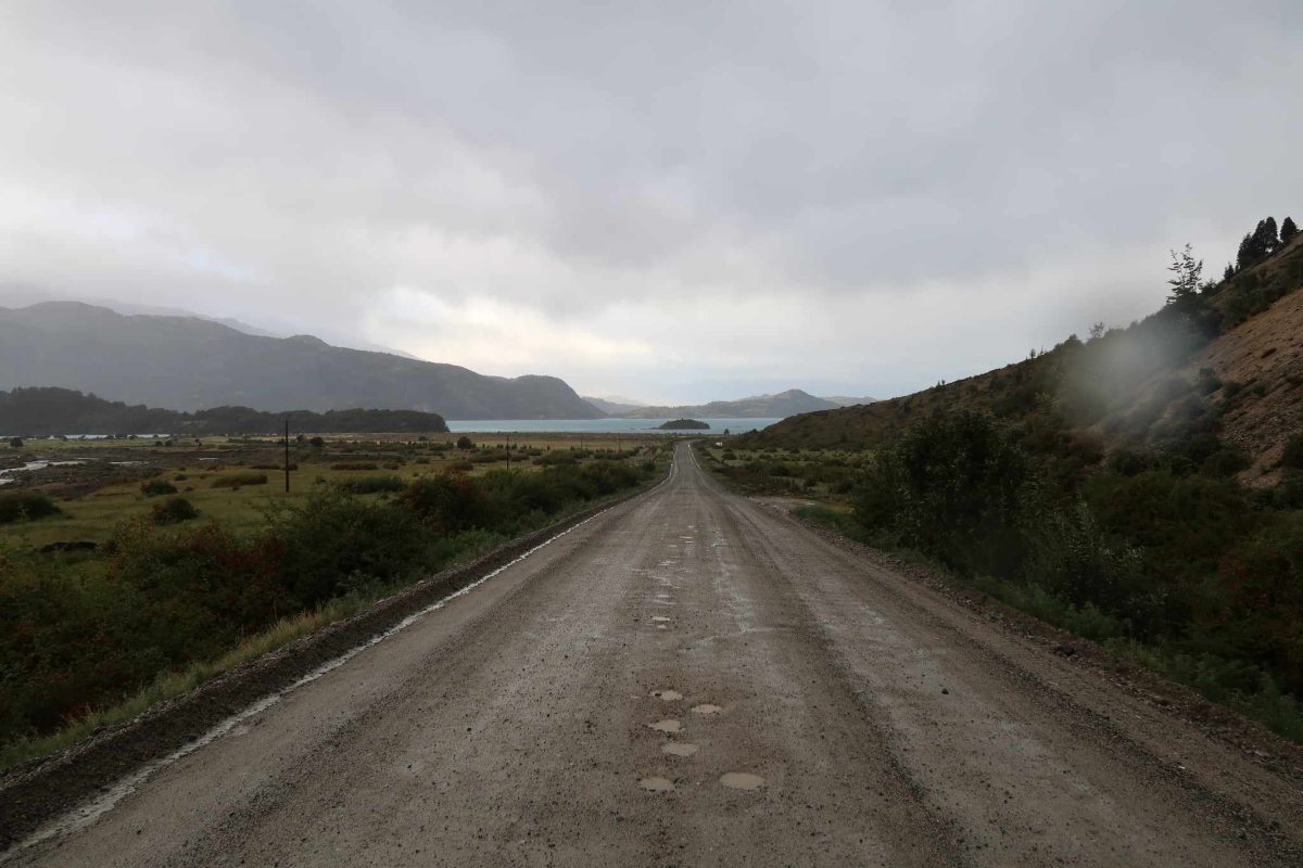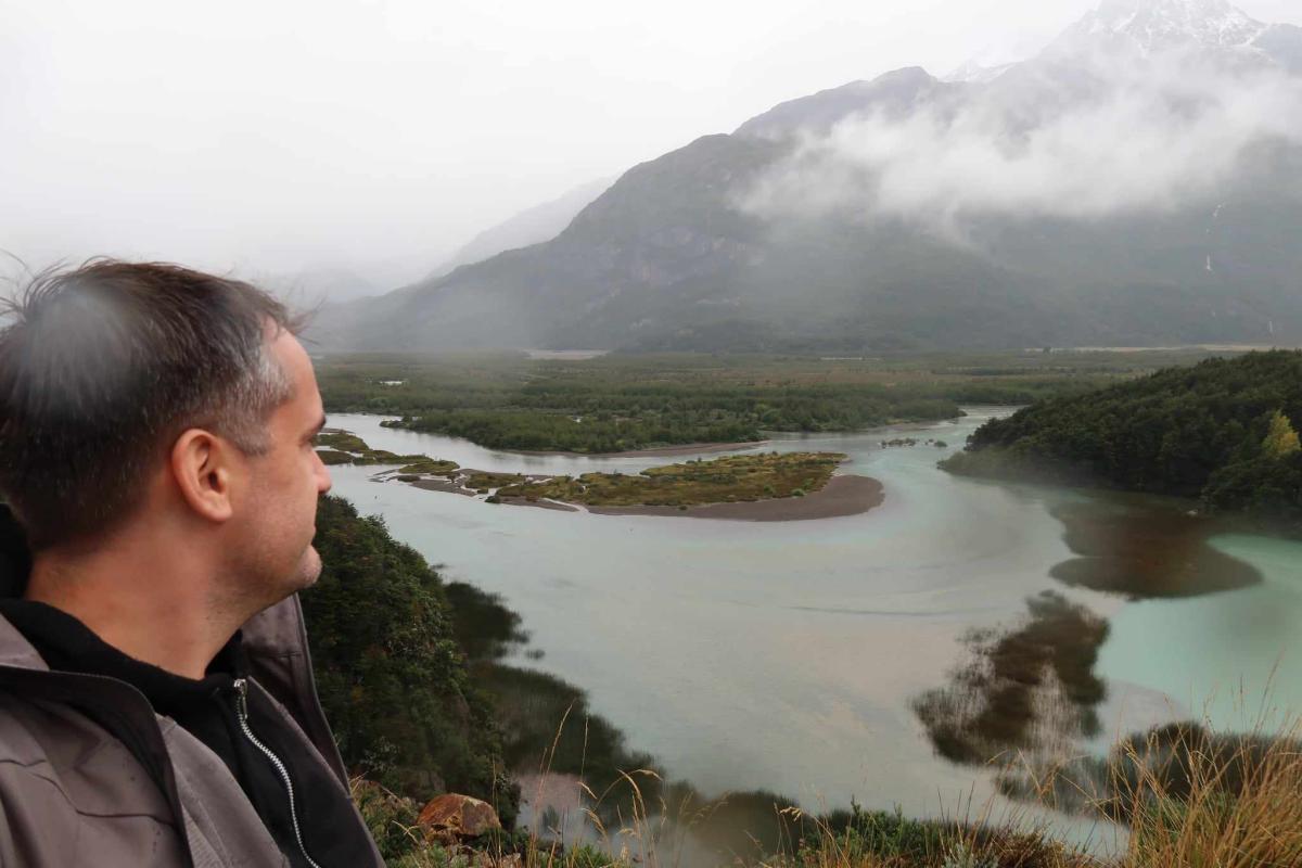 Pomalou jízdou jsem se sunul ke svému cíli. Po cestě byly dechberoucí výhledy. Rozervané zasněžené hory a rozlité široké řeky, v kterých byl les bažinou. Naprostá nádhera. Samotná cca 100 km cesta zabrala dalších pět hodin. Jel jsem pomalu a skoro pořád zastavoval u ikonických výhledů. Občas cestu vzala řeka nebo se na ní sesunul celý svah. Kupodivu tam ale hned byli cestáři a hned daný úsek opravovali. Jen se muselo čekat na uvolnění cesty. V podvečer na mě vykoukla tyrkysově modrá hladina jezera. Hloubka dosahuje úctyhodných 586 m. Jelikož pořád pršelo a strašně fučelo, hledal jsem kemp. Podařilo se najít jeden kousek od břehu jezera, kde to vypadalo jak u nás na Ponoru. Otevřená kuchyň se stolem na sednutí stlučený z kmenů stromů a polepená sololitem. Společnost mě dělal starší manželský pár ze Santiaga, který už dva týdny cestuje Patagonií. Sice uměli jen trošku anglicky, ale hezky jsme si povykládali a zkonzumovali zbytky vína a piva. Dokonce se stavil i majitel kempu, který mě zkasíroval o 10 tisíc pesos.